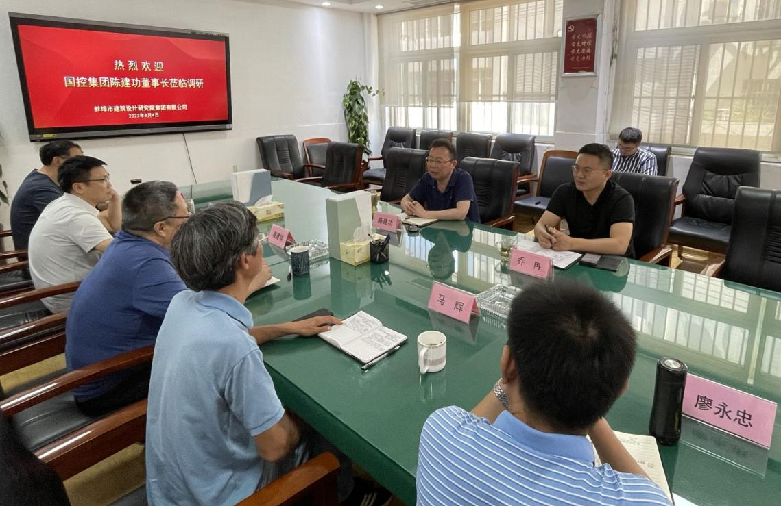 8月4日上午,集團黨委書記、董事長陳建功一行赴建院集團召開調研座談會,建院集團全體領導班子成員參加會議。