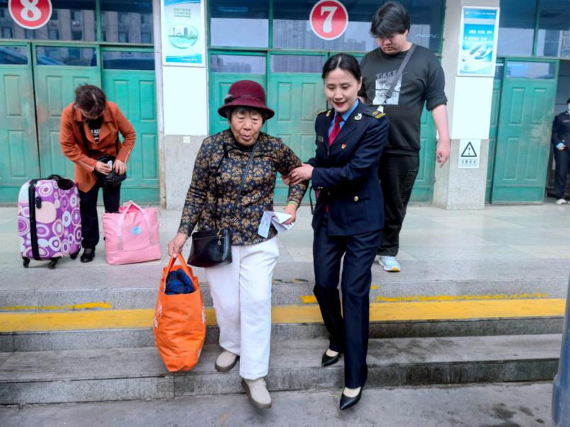 在熙攘的站區(qū),有一群始終在一線崗位上默默堅守的勞動者。在筆者按下相機快門的瞬間,一位站務(wù)員正攙扶著步履蹣跚的老人乘車,這名交通服務(wù)人員身姿挺拔,制服整潔,眼神專注且充滿關(guān)切,她的動作輕柔,傳遞著溫情與關(guān)懷,仿佛在告訴老人不必擔憂。行動不便的老人因為工作人員的陪伴而多了幾分安心,緩緩走出的每一步都像是在訴說著“有你,我放心”。