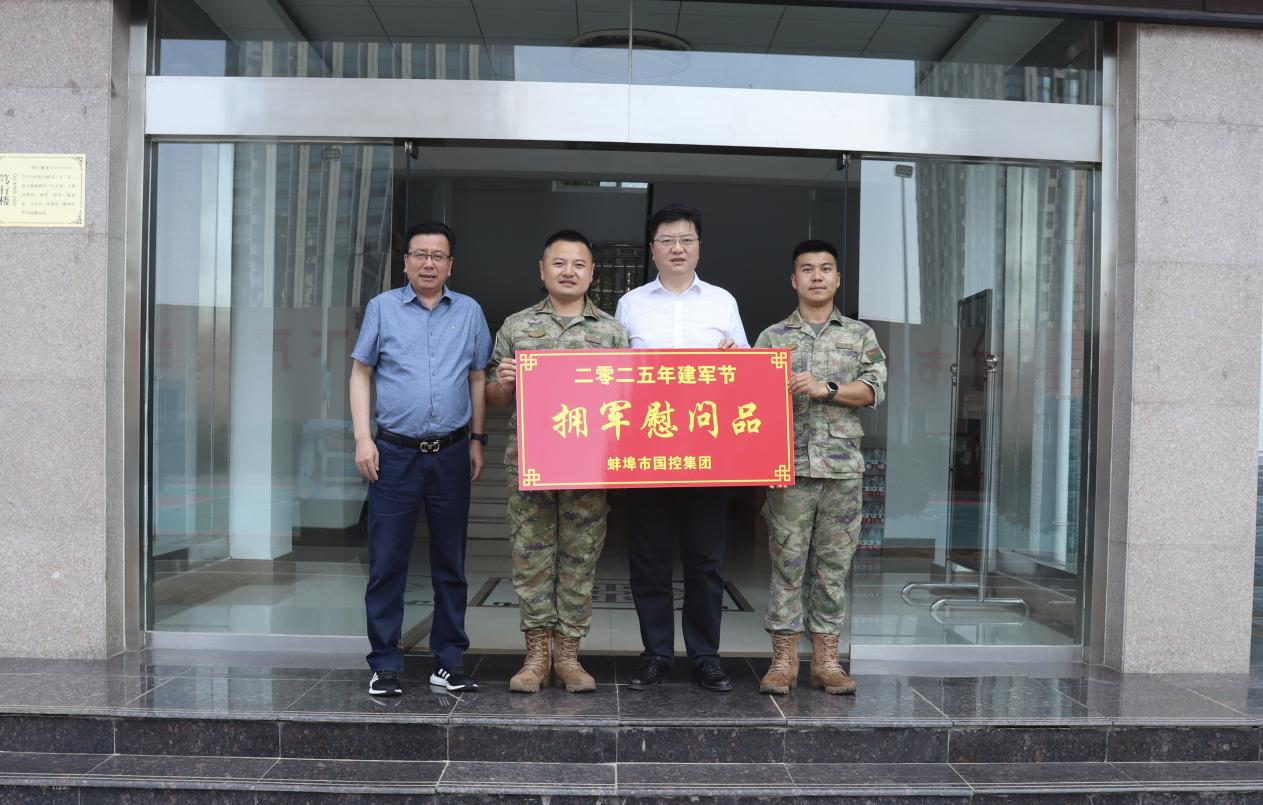 在“八一”建軍節即將來臨之際,為進一步繼承和弘揚愛國擁軍光榮傳統,鞏固發展軍政軍民團結良好局面,市國控集團黨委副書記、副董事長、總經理劉冰及市國控集團工會主席、機關黨支部書記、人力資源部部長李軍帶隊對共建部隊進行節前走訪慰問,向部隊官兵致以崇高敬意和節日問候。
